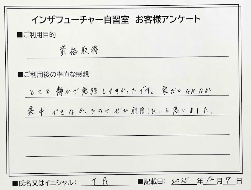 それなら、朝7時から深夜24時まで使えて、専用席のある自習室が最適です。